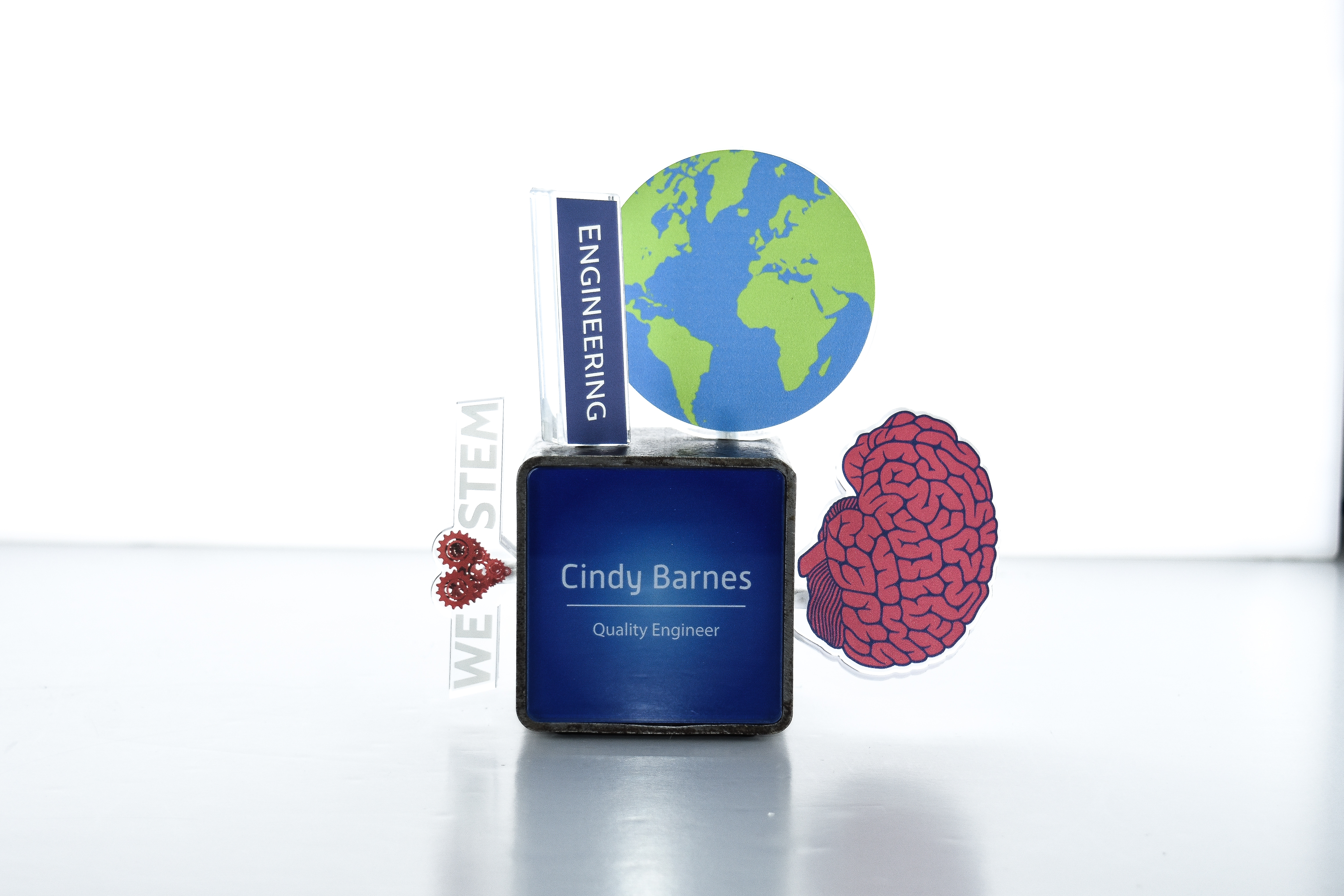 CUBED comes equipped with two acrylic face plates, front and back. Use this space to praise teams and individuals for their contributions and accomplishments... even doubles as a dry-erase whiteboard!